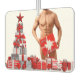 Merry Christmas SlipperyJoe red white silver gift boxes bows muscular male chest shirtless man holiday ornaments artistic tree festive background six-pack stomach gay pride gifts LGBTQIA bold unique holiday cheer various wrapped presents