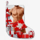 Merry Christmas SlipperyJoe red white silver gift boxes bows muscular male chest shirtless man holiday ornaments artistic tree festive background six-pack stomach gay pride gifts LGBTQIA bold unique holiday cheer various wrapped presents