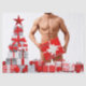 Merry Christmas SlipperyJoe red white silver gift boxes bows muscular male chest shirtless man holiday ornaments artistic tree festive background six-pack stomach gay pride gifts LGBTQIA bold unique holiday cheer various wrapped presents