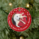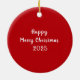Merry Christmas Smiling Dog Photo Funny Red Circle Ceramic Ornament