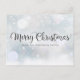 Modern script snowflakes office holiday postcard featuring falling snowflakes on a snowy background with a Christmas greeting set in an elegant black script text. Personalise by adding your company name. You can add a seasonal message on the reverse. Designed by Thisisnotme©