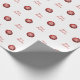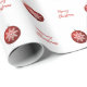 This red and white Christmas wrapping paper has a festive pattern on it. A snowflake is on a red Christmas ornament. Merry Christmas is in a elegant red script.