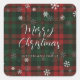 Merry Christmas Snowflakes Plaid Script Custom Square Sticker