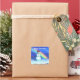 Stickers with my artwork of a smiling snowman standing in front of a rainbow wearing a red hat and holding a candy cane. Text says "Merry Christmas!"