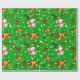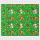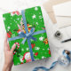 Wrap your holiday gifts with this Christmas wrapping paper featuring stars, snowman, Christmas bells, candy cane and Christmas gift on green background. Your presents will look extra jolly under the Christmas tree.