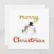 'Merry Christmas' in faux gold colour and red script with illustration of a snowman centre.