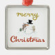 'Merry Christmas' in faux gold colour and red script with illustration of a snowman centre.
