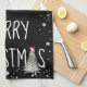 Merry Christmas Snowman On Black Tea Towel