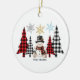 Add a touch of rustic charm to your Christmas tree with this beautiful modern ornament! Featuring A happy Snowman wrapped in a plaid Scarf with Christmas plaid trees in red and black, grey and black, finished off with three snowflakes in blue, silver and gold and the festive phrase "Merry Christmas" Add your own message on the back to make it more special capturing the spirit of the season in a unique modern design. Perfect for hanging on your Christmas tree or giving it as a special keepsake, this ornament is a festive treasure for years to come.