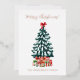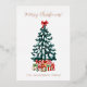 Merry Christmas Snowy Tree Rose Gold Foil Holiday Card