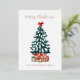 Send warm holiday wishes with this beautifully designed foil Christmas card featuring a classic snow-covered Christmas tree decorated with a red bow and surrounded by festive wrapped gifts. Perfect for spreading joy and cheer this holiday season, this Christmas card combines watercolor artistry with luxurious rose gold foil. Personalize it with a custom greeting at the top and a family name at the bottom.