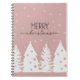 "Capture your holiday thoughts and ideas in our Merry Christmas spiral notebook. Featuring a charming pink cover adorned with festive trees and snowflakes, this notebook is perfect for jotting down notes, holiday plans, or seasonal reflections. A delightful gift for anyone who loves Christmas cheer!"