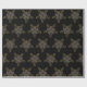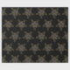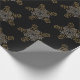 The design features the holiday wish "Merry Christmas," in gold and silver font, in the form of a most elegant, artistic calligraphy in the shape of a star. It is a wonderful representation of the Christmas spirit. The pattern of repeated stars is placed against a black background. The brilliant combination of the colours silver, gold, and black brings on the sense of elegance and sophistication to your special gifts.