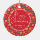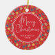 This Merry Christmas star pattern red personalized ceramic ornament features a colorful festive star design with custom family name and year for a meaningful holiday keepsake. Perfect for Christmas trees, family traditions, gift exchanges, and personalized seasonal décor.