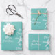 Merry Christmas Starfish Patterns Teal White Beach Wrapping Paper Sheet
