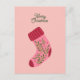 Merry Christmas Stocking PostCard with a cute pink sock.