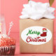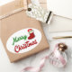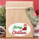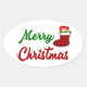 Stickers with Merry Christmas in 3D green and red text and a Christmas stocking. Stickers are available in several shapes.