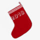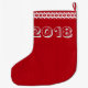 Decorate your mantle with this cute personalised Christmas Stocking. The stocking features a folksy snowman couple surrounded by festive Christmas trees on a light mint green medallion against a red striped background. The Snowman design reads, "Merry Christmas and a Happy New Year" in red and golden yellow. Just below that is a space for your name in green and white. The back is red with a space for the date in a pale mint green. Click customise to change the fonts, resize or re-position the text or graphics - edit it however you like. Merry Christmas!
