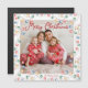 Cute watercolor strand of Christmas lights form a pretty holiday border around your favourite family square photograph from this winter. Fun cursive red script reads Merry Christmas across your photograph magnet card. Beautiful magnetic Christmas cards.
