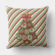 A Modern Red And Green Glittery Striped Christmas Large Throw Pillow With Patchwork Tree Center
