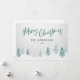 Rustic country holiday flat cards with "Merry Christmas" in a handwritten style along with your personalised family name or names and the year, all in pine green in vintage typography. A beautiful scenic view of trees and winter snow in watercolor style artwork highlights the front of the card. The back of the card features text space for your personal holiday message or can be left blank for you to handwrite one if needed. Available in high quality printed card stock for standard mailing or a downloadable, digital format for quick and easy sending via text message, email or even self print.