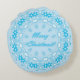 Merry Christmas text round frame snowflake blue white