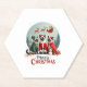 Merry Christmas Three Santa Elf Reindeer Siamese C Paper Coaster