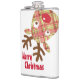 A whimsical tipsy plaid reindeer peeks from the top of this fun design.