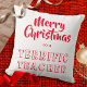 Surprise your teacher with a gift of this festive throw pillow. The cushion shows the message 'Merry Christmas to a Terrific Teacher' in red on a white background. Bright and colourful, the cushion is a fabulous gift idea, whether for teachers at elementary or high schools, kindergarten or college. It could be from an individual student or from the whole class. Your teacher will no doubt be wanting to relax in the winter holidays after a busy term, so a cushion seems a very apt present.