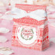 Customisable Merry Christmas with traditional vintage graphic favour box (tent). Your name and message on beautiful Lapland style pattern in red and white background. Other models are available; Matching personalised Christmas Paper napkin, paper plate and more...