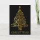 Merry Christmas Tree Black Gold Shiny Typography Holiday Card