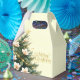 This favor gift box is printed on with a single Christmas tree in green. Festive text of Merry Christmas wraps around the box on ivory color background with small decorative gold stars.
