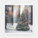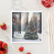 These holiday napkins feature a glowing Christmas tree in the forest.