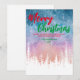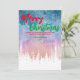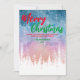 Merry Christmas tree Night red green script forest Holiday Card