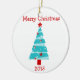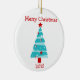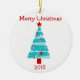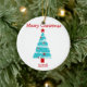 Turquoise, aqua, red and white ormanent that says "Merry Christmas". Personalise it for a special touch.