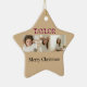 "Make your holiday decor truly special with this custom Merry Christmas ornament. Featuring a star motif and space for your child's photos and name, it's a unique keepsake that shines with love and festive cheer. Ideal for decorating your own tree or gifting to grandparents, godparents, or loved ones who adore your little star."