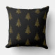 Merry Christmas Tree Pattern Black Gold Elegant Cushion