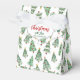 Christmas tree pattern, white and green, watercolor winter favor box with personalized text, Merry Christmas with Love.