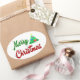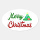 Stickers with Merry Christmas in 3D green and red text and a Christmas tree. Stickers are available in several shapes.