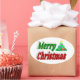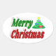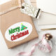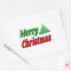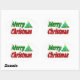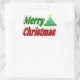 Stickers with Merry Christmas in 3D green and red text and a Christmas tree. Stickers are available in several shapes.