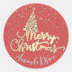 Merry Christmas Tree Script Name Gold Orange Red Classic Round Sticker