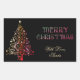 Merry Christmas Tree Stars Black Gold Red Rectangular Sticker