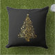 Merry Christmas Tree Stars Black Gold Shiny Chic Cushion