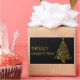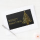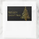 Merry Christmas Tree Stars Black Gold Shiny Chic Rectangular Sticker