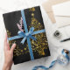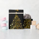 Merry Christmas Tree Stars Black Gold Shiny Chic Wrapping Paper