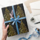 Merry Christmas Tree Stars Black Gold Shiny Chic Wrapping Paper