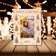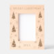 Festive wood frame with "Merry Christmas" customised text and customised year. The design features whimsical hand drawn Christmas trees, snowflakes and dots. Elevate your cherished Christmas memories with this beautiful wood laser etched picture frame!