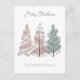Make a lasting impression this holiday season with our custom holiday cards, a perfect blend of warmth and branding. Thoughtfully designed, these cards feature a charming watercolor illustration of three muted Christmas trees, accentuated by the words "Merry Christmas" in elegant script typography. Your business name is displayed in a clean, modern sans serif font for a professional touch.
