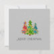 Vibrant colored letters, trees, holly and cancy canes in a cheerful message suitable for a non-religious holiday greeting. I especially liked it on the black background which made the design pop.