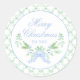 Merry Christmas Trellis and Swag with Blue Bow Classic Round Sticker
